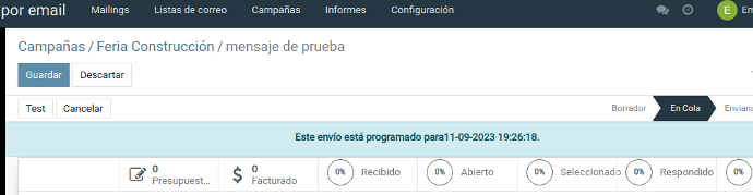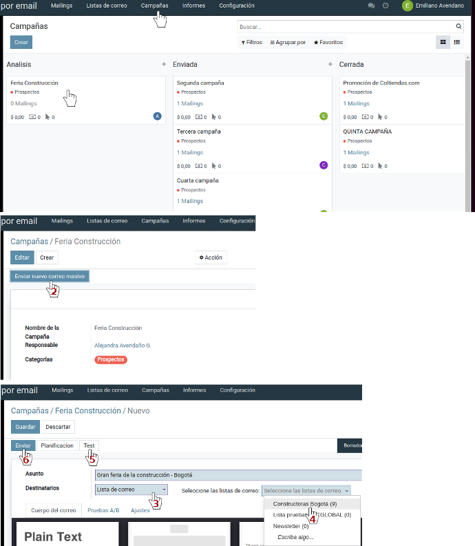 Antes de Enviar(6), es recomendable hacer un Test(5) (envio de prueba) para verificar cómo llega.